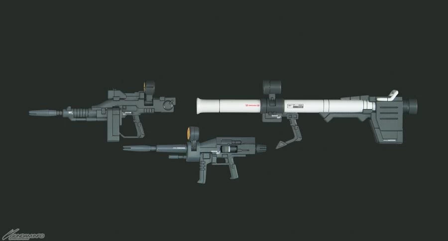 The Early Type features a two shoulder magnums, vulcan guns on its chest, an asymmetrical forearm-mounted gatling gun, and rear-mounted cannon; while Middle Type includes symmetrical parts all through the body for its iconic appearance.